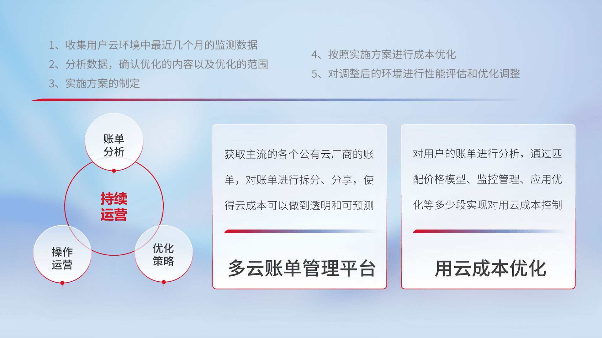 监控业务系统资源开销,,,,对资源的消耗精确计量,,,,实现费用的透明化管理,,不断提升资源使用率,,,调整资源购买方式,,,降低资源费用成本,,用云成本可预测、、、用云费用可优化,,,云资源配额有据可依。。